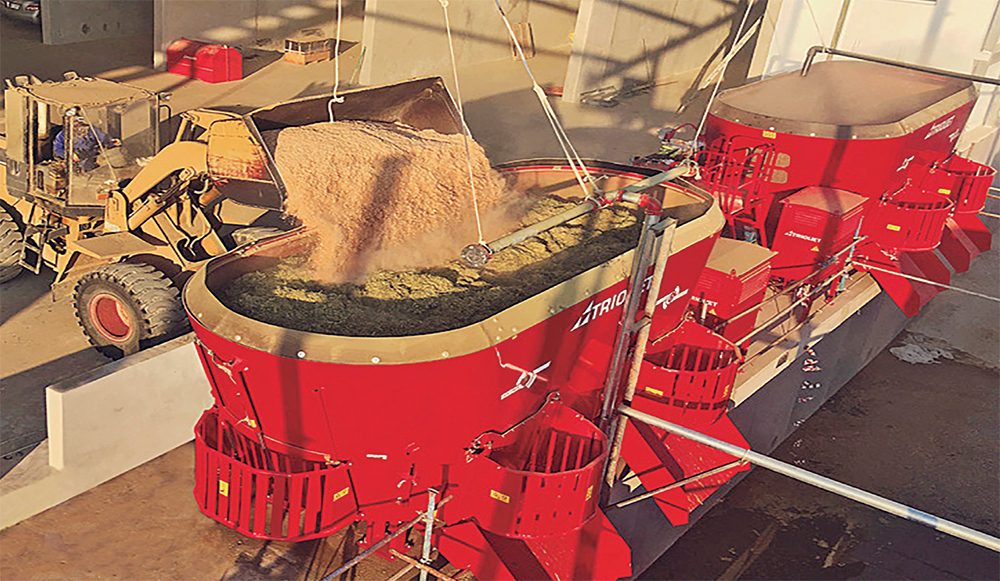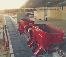 트리오매틱 로봇배합-급이시스템은 2개의 수직 오가로 용량 3m3의 TMR용 원료를 배합한후,